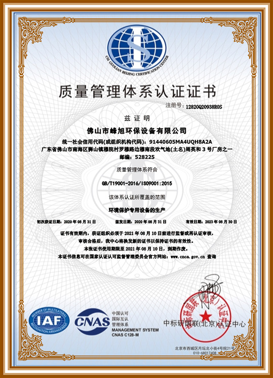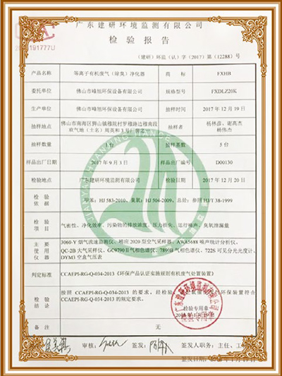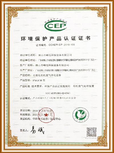 峰旭環(huán)保-十余項設(shè)備認證證書,充分證明產(chǎn)品廢氣處理效果