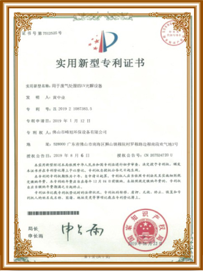 峰旭環(huán)保-十余項(xiàng)設(shè)備認(rèn)證證書,充分證明產(chǎn)品廢氣處理效果